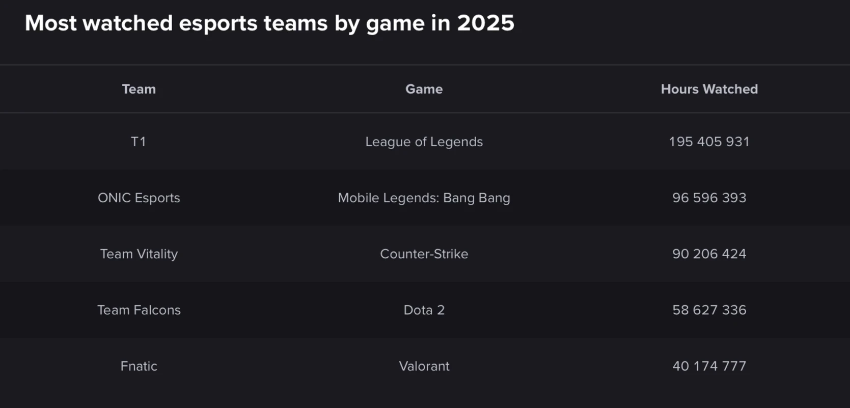 Team Vitality по Сounter-Strike 2 возглавила рейтинг самых популярных команд в 2025 году