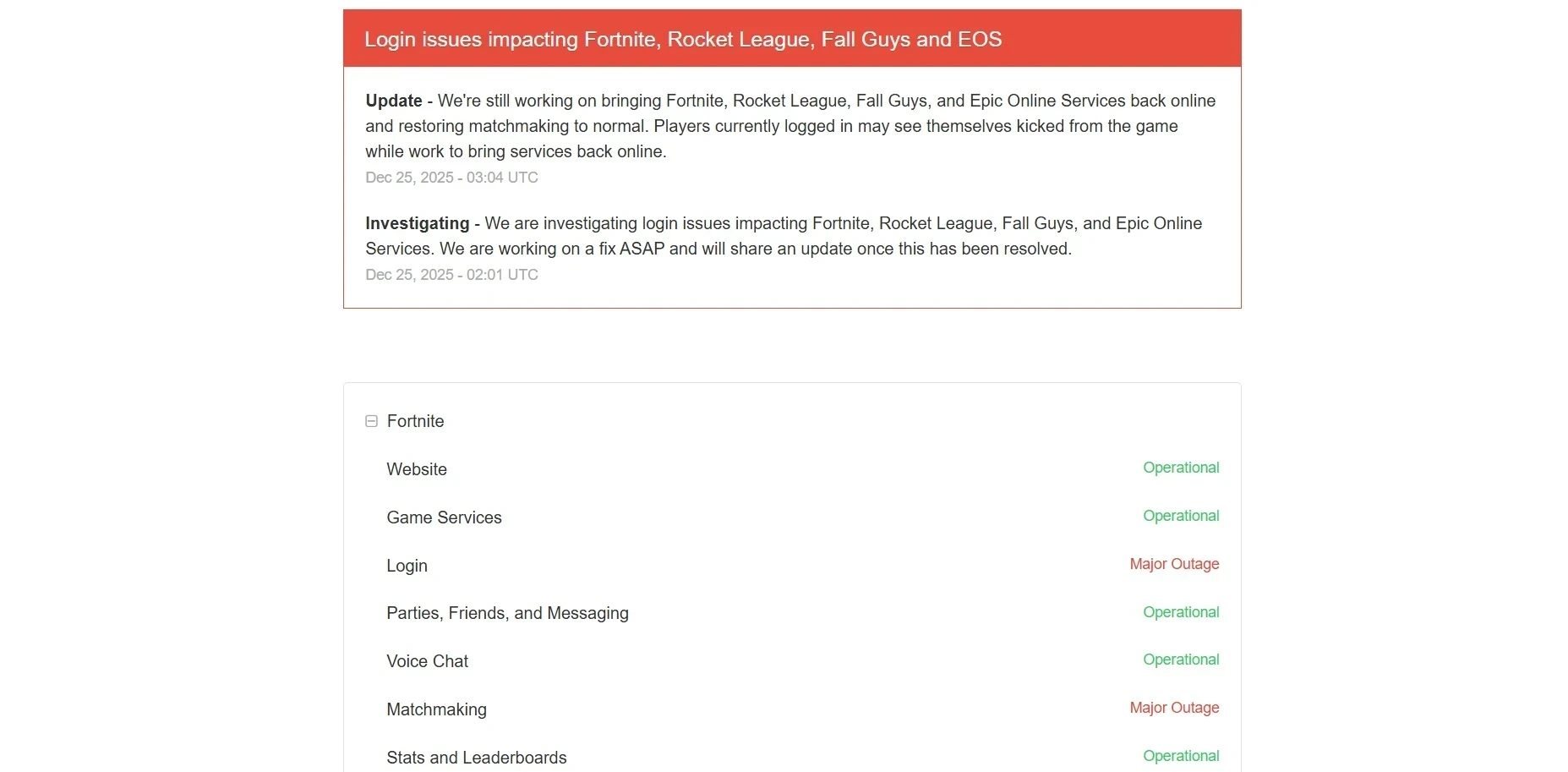 Но теперь поплохело Epic Games Store. Игроки испытывают проблемы со входом и матчмейкингом в Fortnite, Rocket League, Fall Guys и Epic Online Services.