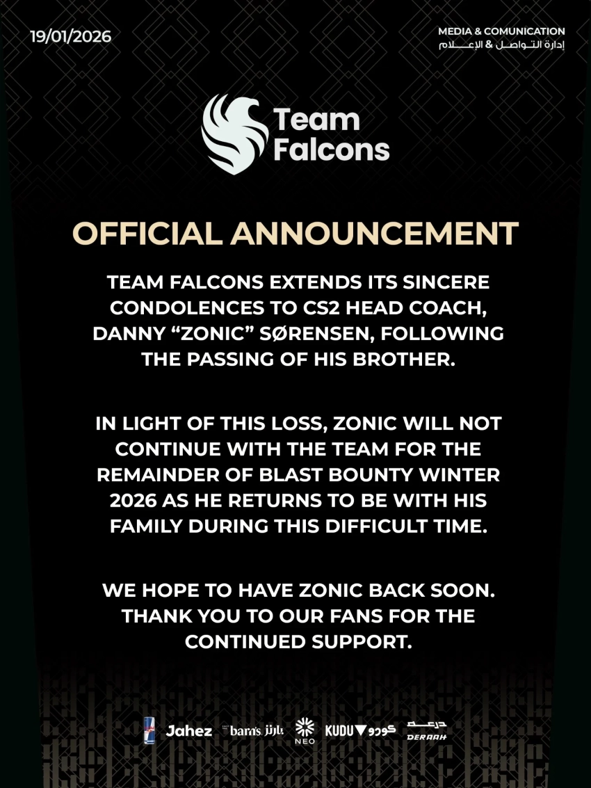Источник: HLTVСостав Team Falcons по Counter-Strike 2 понес серьезные потери перед стартом финальной стадии BLAST Bounty 2026 Season 1. Организация официально объявила, что команда отправится на LAN-турнир без своего наставника и одного из игроков основного состава.