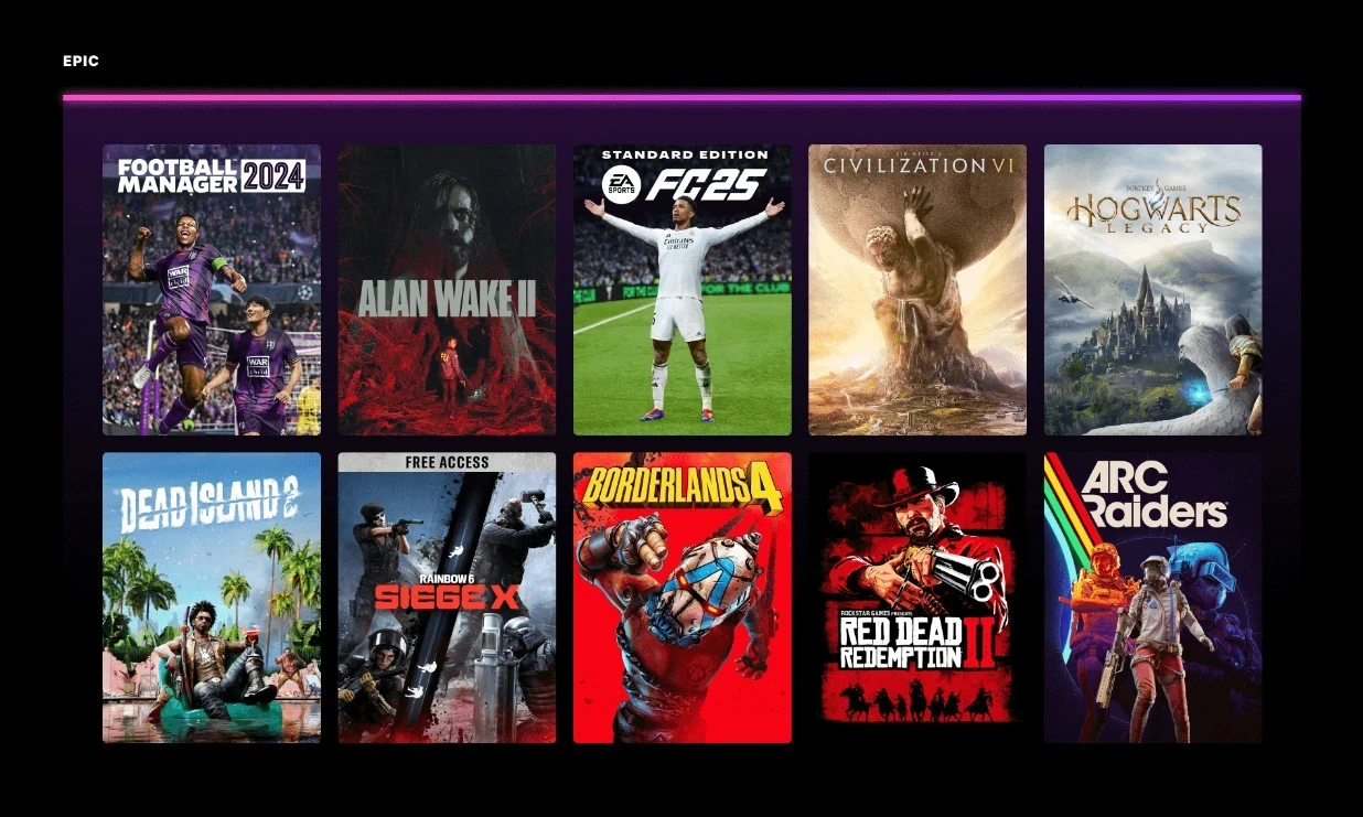 В подборку «эпических» хитов вошла целая десятка. Например, триллер Alan Wake 2 — на PC его нельзя купить в каком-либо другом магазине. А последней по дате релиза новинкой в топе стал эвакуационный шутер ARC Raiders. Другой новинкой 2025 года стала Borderlands 4.