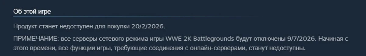 Увы, игры не просто уберут из продажи — их серверы закроют. Это случится 9 июля 2026 года, когда игроки WWE 2K Battlegrounds и NBA 2K Playgrounds 2 не смогут сразиться против других геймеров и воспользоваться какими-либо сетевыми функциями.