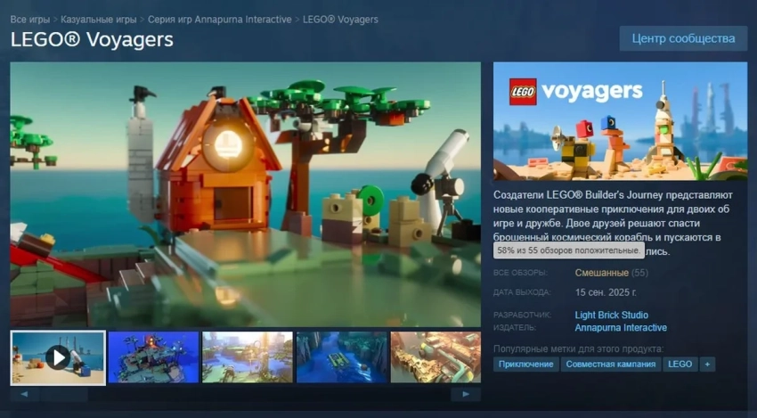 Также имеются жалобы на вылеты в процессе игры. В положительных же отзывах LEGO Voyagers хвалят за веселый геймплей, позволяющий как следует оттянуться в компании друга. К слову, пиковый онлайн составил всего 883 одновременных игрока на момент публикации новости.